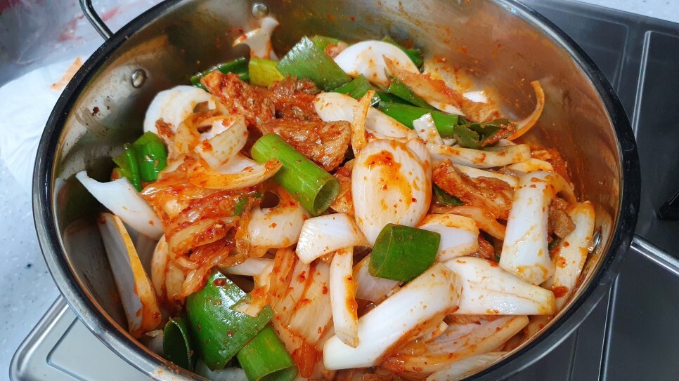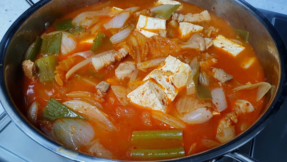 양파도 같이 활용해서 정말 맛있는 돼지 고기 김치찌개를