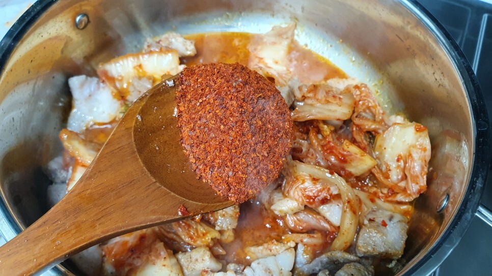 이 때 고춧가루를 2-3숟갈 정도 넣어서