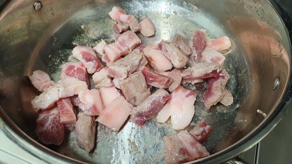 고기 겉이 다 익었다 싶을 정도까지만 볶아주세요.