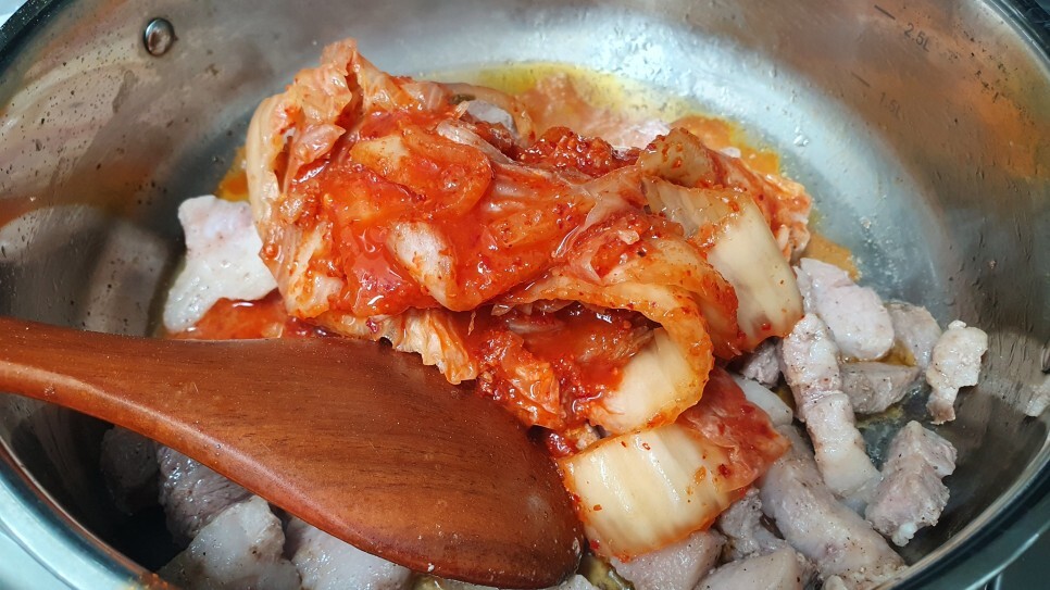 잘 익은 김치 덕에 새콤 하고