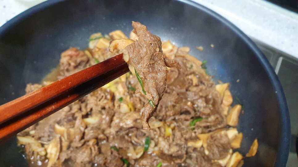 이 야생화 특유의 향이 소불고기를 진짜 고급스럽게 만들어줘유.