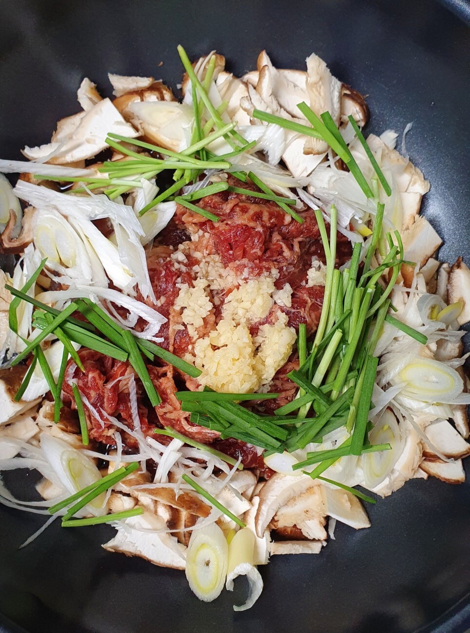 표고버섯 2개 대파 흰부분 1뿌리